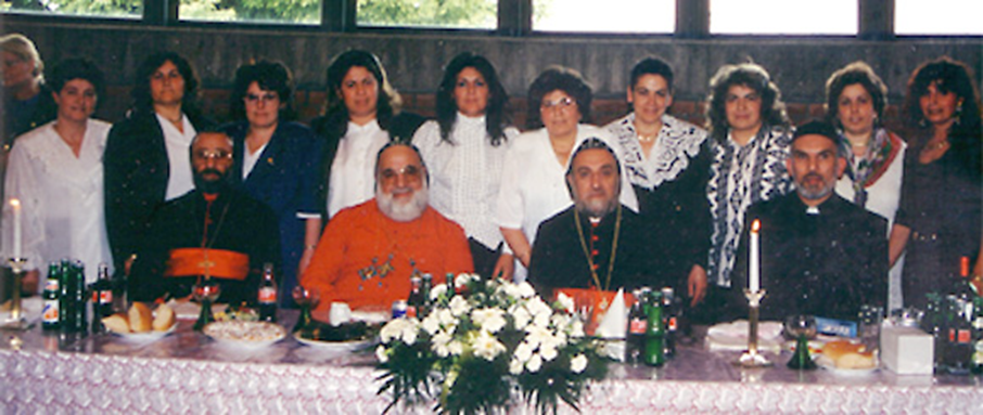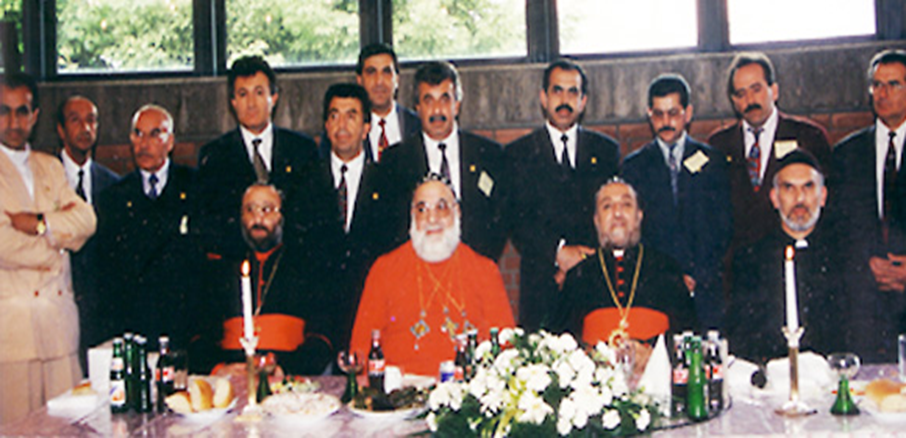 21.05.1995 Frauenvorstand und Metropolit Mor Clemis Eugene Kaplan (Los Angeles), Seine Heiligkeit Moran Mor Ignatius Zakka I. Iwas, entschlafenen Metropolit Mor Julius Yeshu Çiçek und Pfarrer Numan Dag