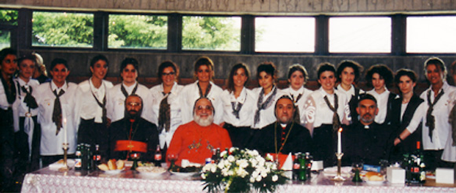 21.05.1995 Jugendgruppe und Metropolit Mor Clemis Eugene Kaplan (Los Angeles), Seine Heiligkeit Moran Mor Ignatius Zakka I. Iwas, entschlafenen Metropolit Mor Julius Yeshu Çiçek und Pfarrer Numan Dag
