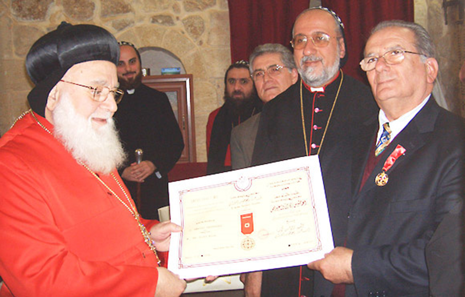 Seine Heiligkeit Moran Mor Ignatius Zakka I. Iwas mit Cercis Uncu und Metropolit Mor Philoxenos Yusuf Çetin von Istanbul bei der Verleihung für seine Verdienste um die Syrisch-Orthodoxen Kirche (Ilyas Köse r.)