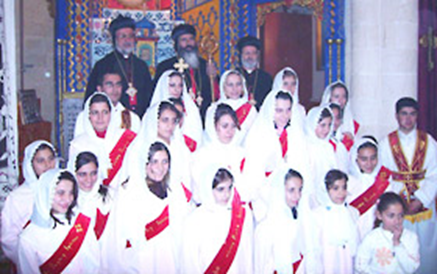 Mädchenchor der Syrisch-Orthodoxen Kirche Mor Petrus & Mor Paulus in Adiyaman mit Metropolit Mor Philoxenos Yusuf Çetin von Istanbul Mor Gregorios Melki Ürek von Adiyaman-Kharput u. Umgebung Metropolit Mor Philoxenos Saliba Özmen Erzdiözese von Mardin