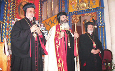 10.12.2006 In Syrisch-Orthodoxen Kirche Mor Petrus & Mor Paulus in Adiyaman mit Metropolit Mor Philoxenos Yusuf Çetin von Istanbul, Mor Gregorios Melki Ürek von Adiyaman-Kharput u. Umgebung Metropolit Mor Philoxenos Saliba Özmen Erzdiözese von Mardin
