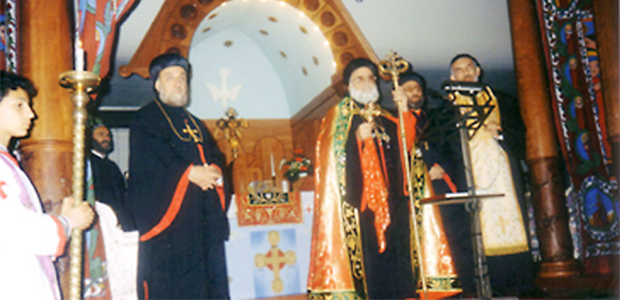 21.05.1995 Kircheinweihung von l.h. Mönch Eliyo Atto, entschlafenen Metropolit Mor Julius Yeshu Çiçek, Seine Heiligkeit Moran Mor Ignatius Zakka I. Iwas Patriarch der Syrisch-Orthodoxen Kirche von Antiochien und dem ganzen Orient, Metropolit Mor Clemis Eugene Kaplan, und Pfarrer Numan Dag.